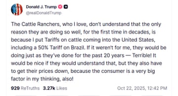 After suggesting the United States would buy Argentinian beef to bring down the cost of American beef, the president doubled down on that plan with comments on social media aimed at farmers and ranchers.