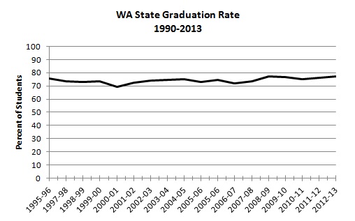 Washington state has vigorously implemented the policy of spending more public money on schools, yet graduation rates remain stubbornly low. In 1990, total public spending on public schools, including federal, state and local sources, was just under $5,000 per student ($8,884 in inflation-adjusted 2013 dollars).