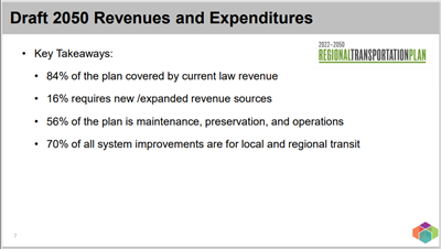 About half of the new revenue would fund public transit, and only 13% would fund state highways in the region.