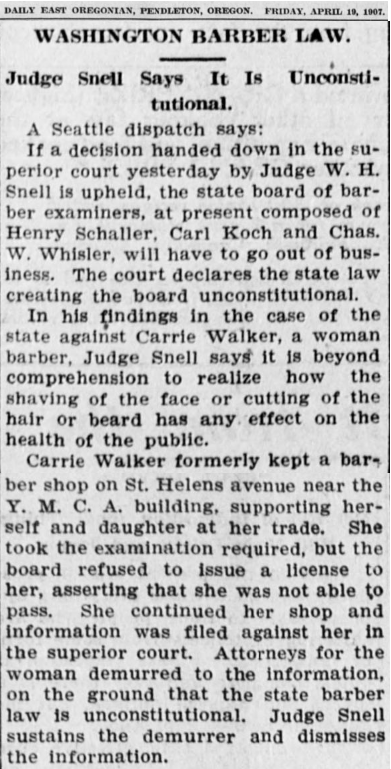 There is a long history of discriminatory use of licensing requirements for this very purpose. In 1907, the State Supreme Court heard a case regarding the unequal application of licenses to a woman who was denied a license to cut hair on the grounds that she wouldn’t be able to pass the test.