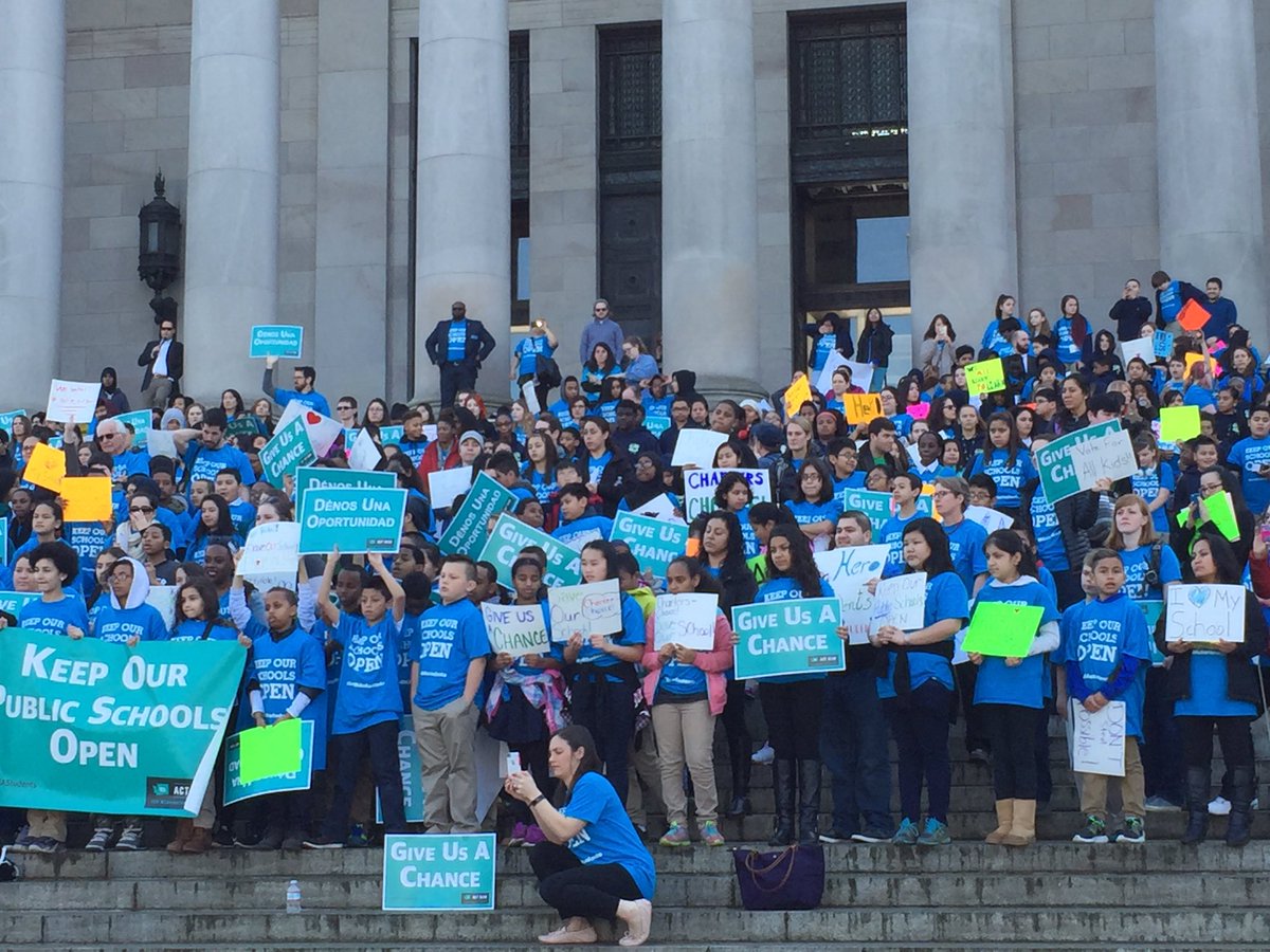 Supreme court justices, rather cruelly many thought, announced just days into the school year that public charter funding was unconstitutional and that the schools would have to close immediately. Charter school families and teachers traveled to Olympia to explain why they love and want to keep their charter schools. Students even created a rap video asking the legislature to save their schools. One 10-year-old girl, who would otherwise be sent to one of the worst schools in the state, said, “I just want a better education.” A girl at Excel Public Charter School said, “I don’t see why we would want to close [charter schools] down for kids!”